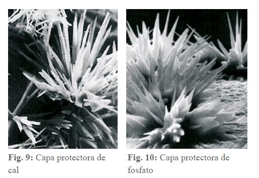 En el desarrollo estadístico de estos procesos, es posible que las zonas superficiales que aún no están cubiertas de cristales de carbonato metálico (véanse las imágenes 9 y 10) los formen ahora, compactando así la capa protectora y actuando como inhibidores de la cor