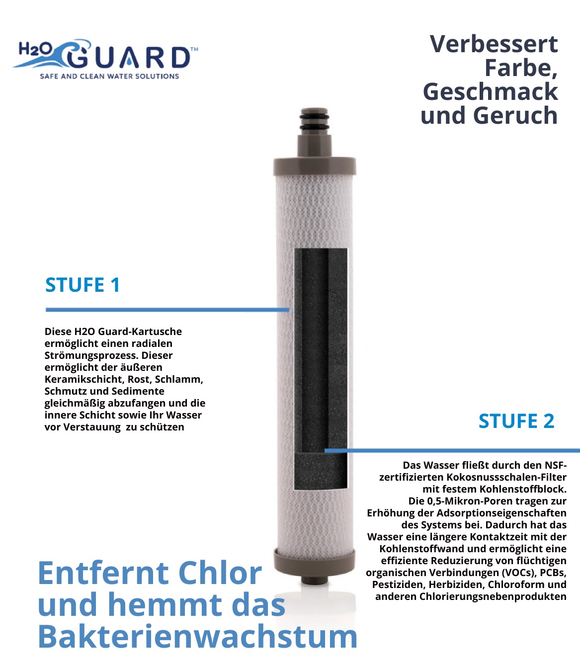 Entfernt Chlor, VOCs, Pestizide, Herbizide und Chlornebenprodukte und verbessert so den Geschmack und die Qualität des Wassers